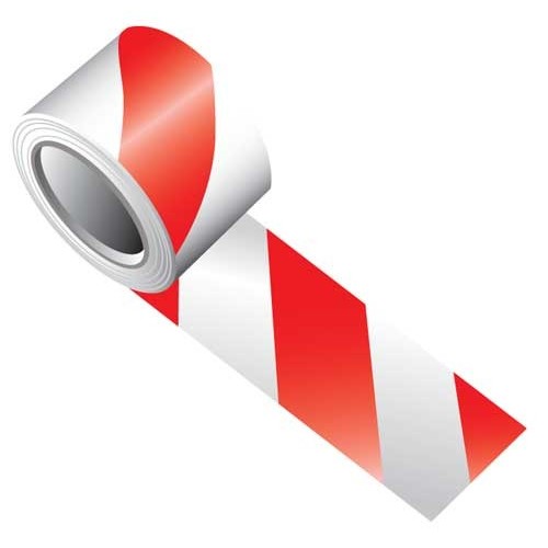 Bandă de securitate adezivă reflectorizantă alb / roșu cu dimensiunea de 5 cm x 10 m.